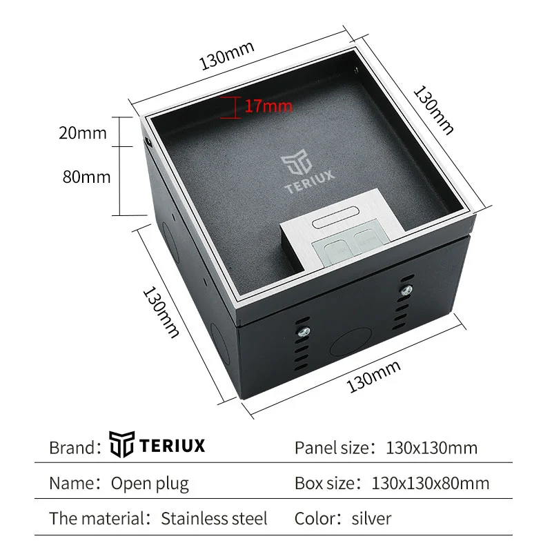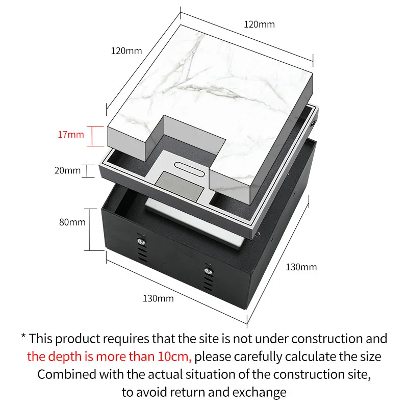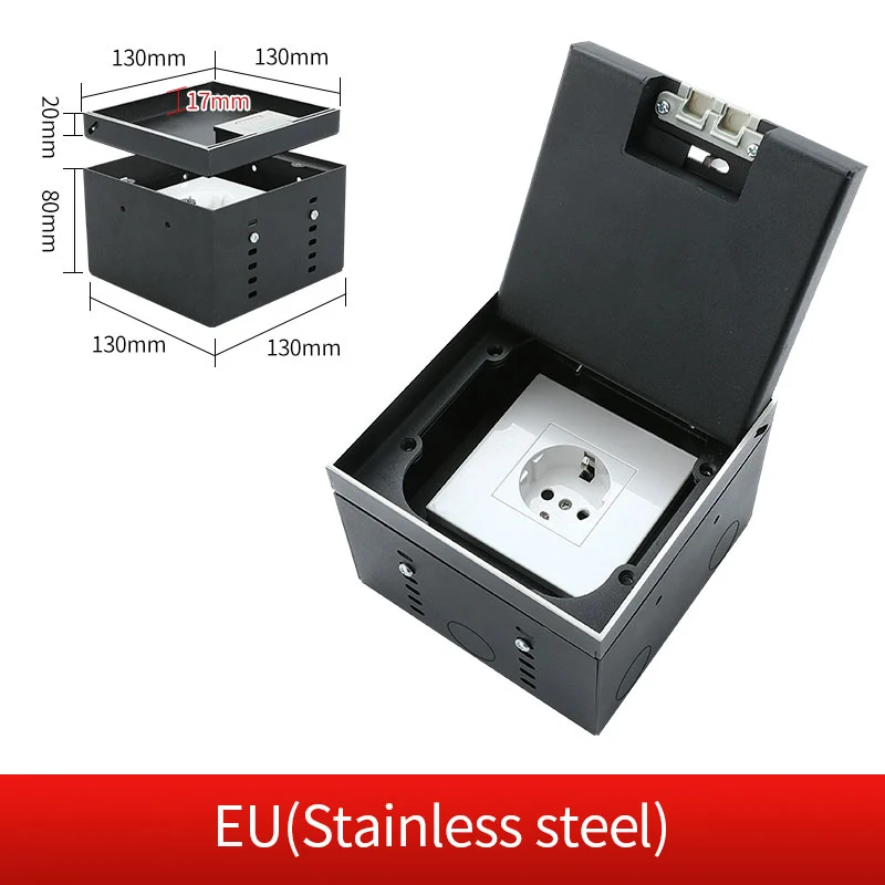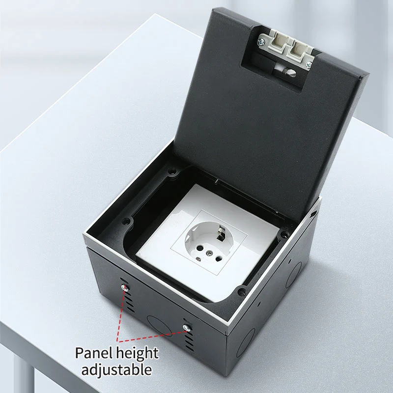 モダンなスペース向けに設計されたこの隠れたタイプの130の埋め込み式床ソケット調整可能なボトムボックスは、床にシームレスな統合で利便性を再定義します。マットブラック仕上げは、暗い大理石のテクスチャとミニマリストのインテリアを補完し、洗練された控えめな存在感を提供します。
