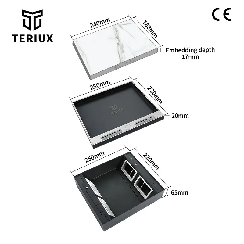 Teriux 250/220埋め込み式床ソケット、そのパネルはさまざまなものと互換性があります フローリング材料(タイル、木、石など)、ブレンドを可能にする あらゆる環境に楽に。使用している場合、電源プラグを挿入できます 床の表面の下から直接、清潔で危険を維持している 外観。